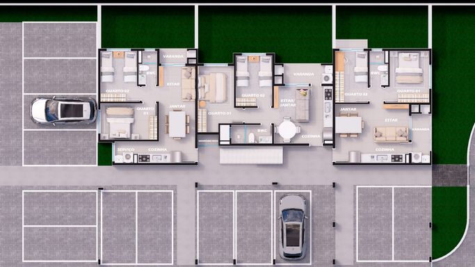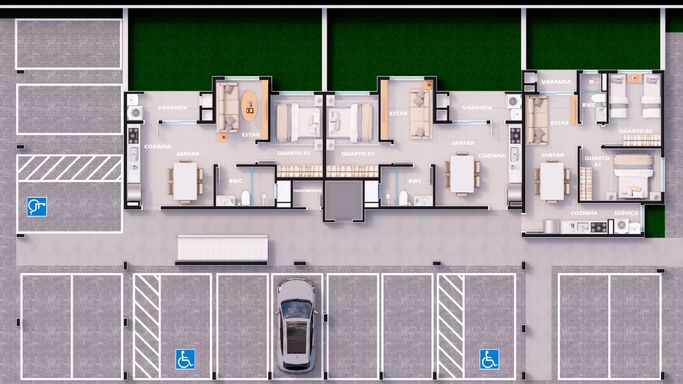 1 vaga exclusiva por apartamento, com 2 vagas PNE